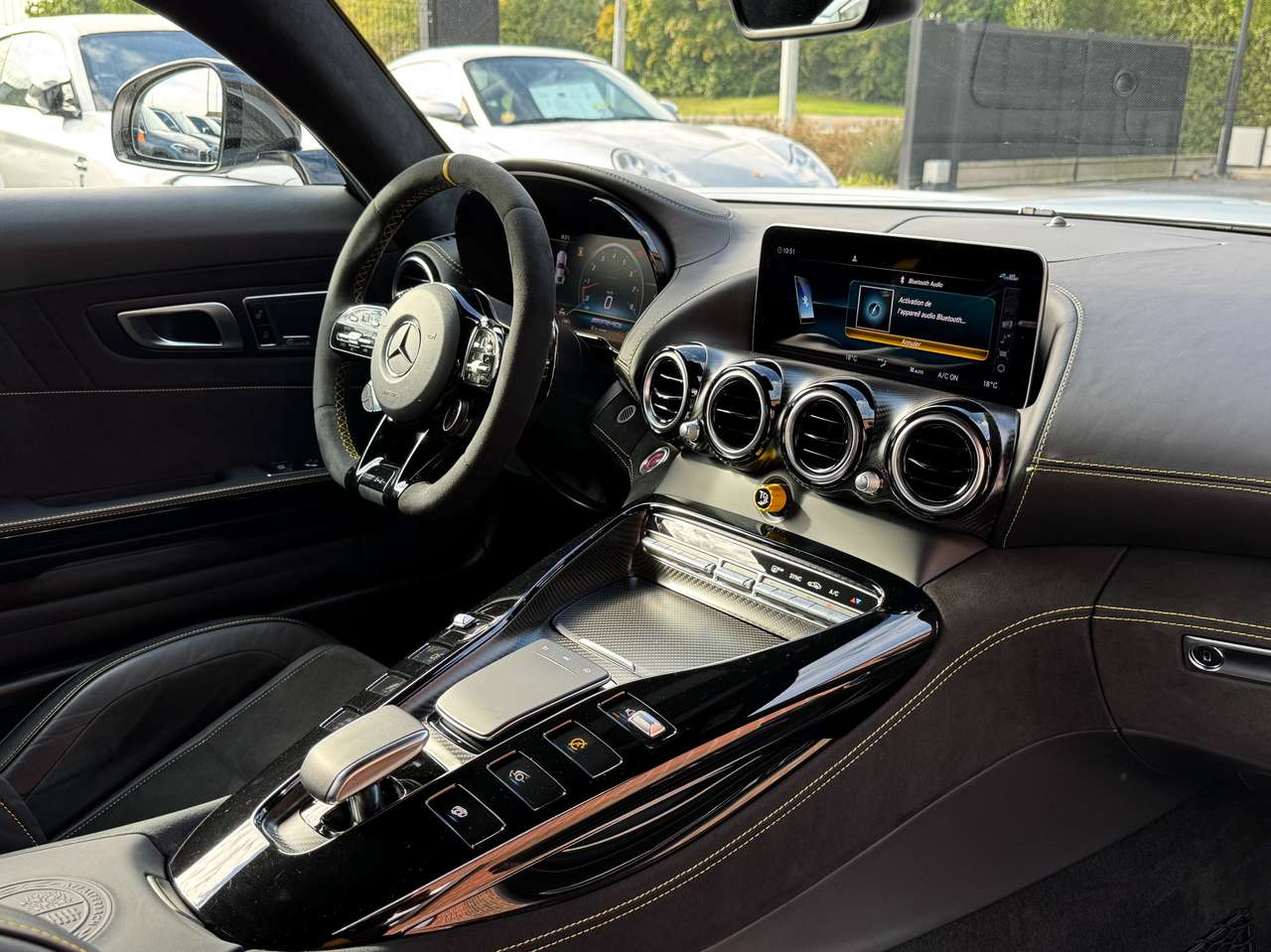 Revêtement des sièges / rembourrage : cuir exclusif Nappa Dinamica avec coutures contrastées jaunes